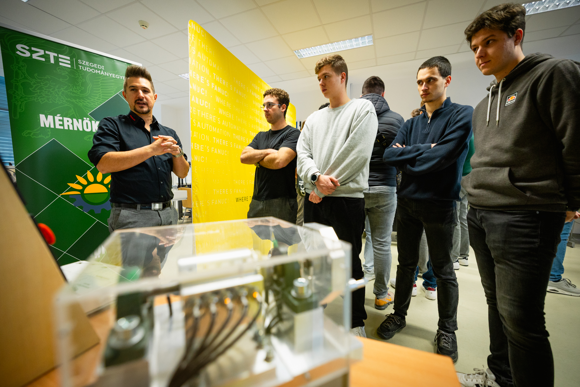 A Szegedi Tudományegyetem Mérnöki Karának mérnökhallgatói számára tartott szakmai napot a FANUC 2025. november 13-án, hogy még közelebb hozza a műszaki felsőfokú oktatásban részt vevő diákokat a gyári automatizáláshoz.